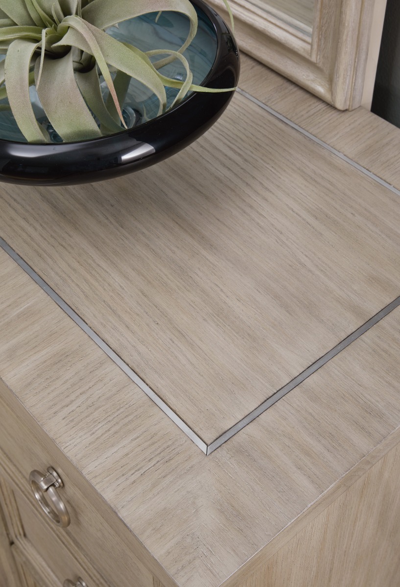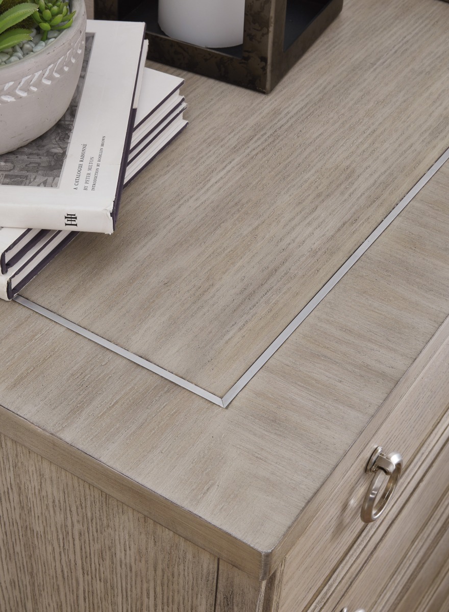 Blaty z cienką wstawką z metalu w wykończeniu w kolorze satynowego niklu