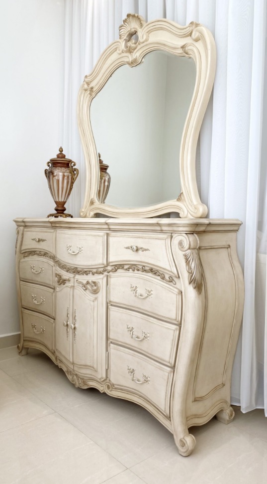 LA BOURGES Cena pln brutto Wymiary cm 9057000EK-201 Łóżko King 7650 233 240 170/77 9057040 -201 Szafka nocna 2587 46 74 76 9057050 -201 Komoda 6974 46 173 102 9057060 -201 Lustro 1745 5 128 127 Dodaj do zamówienia Galeria