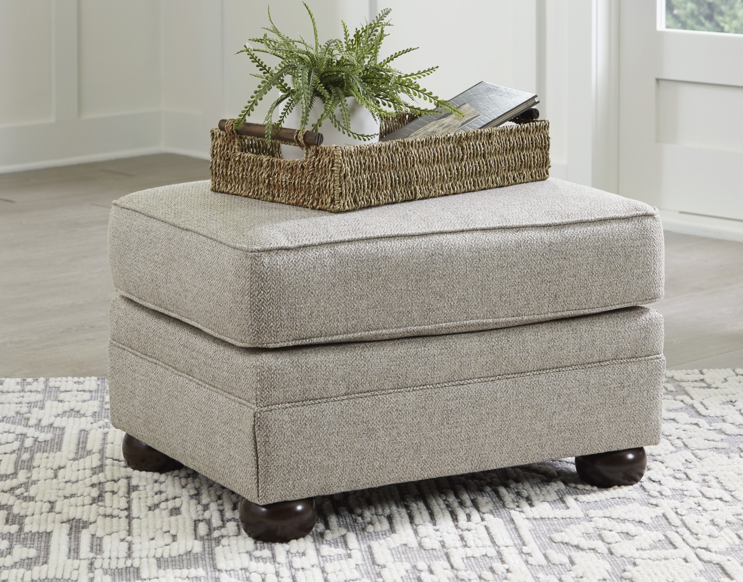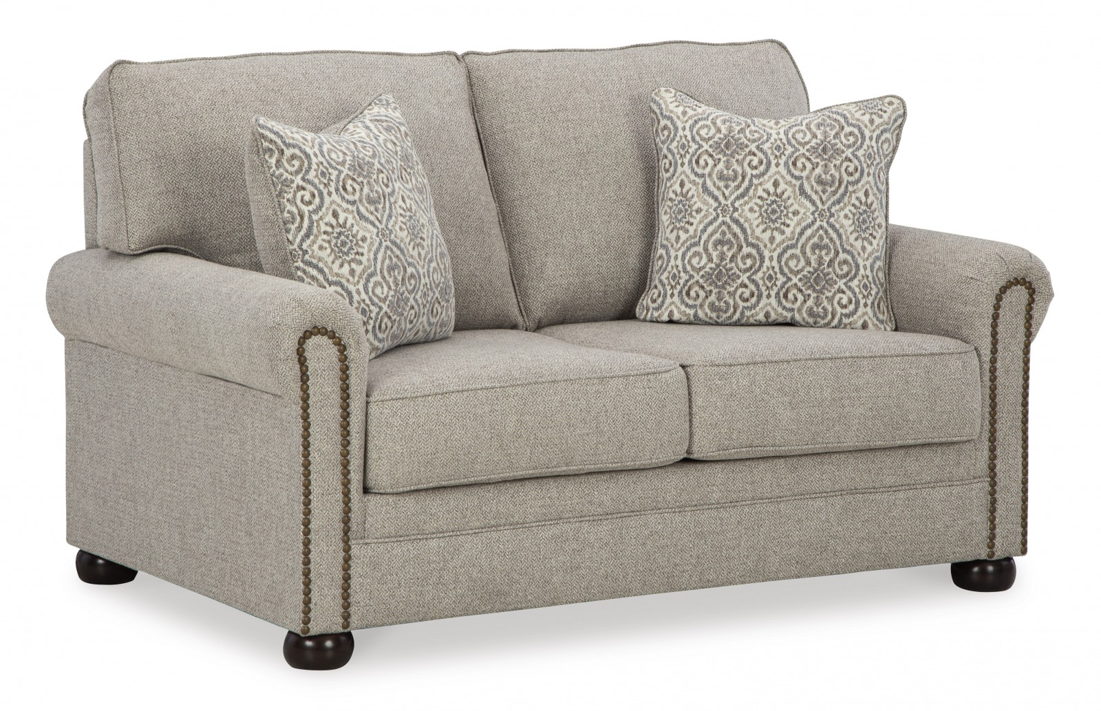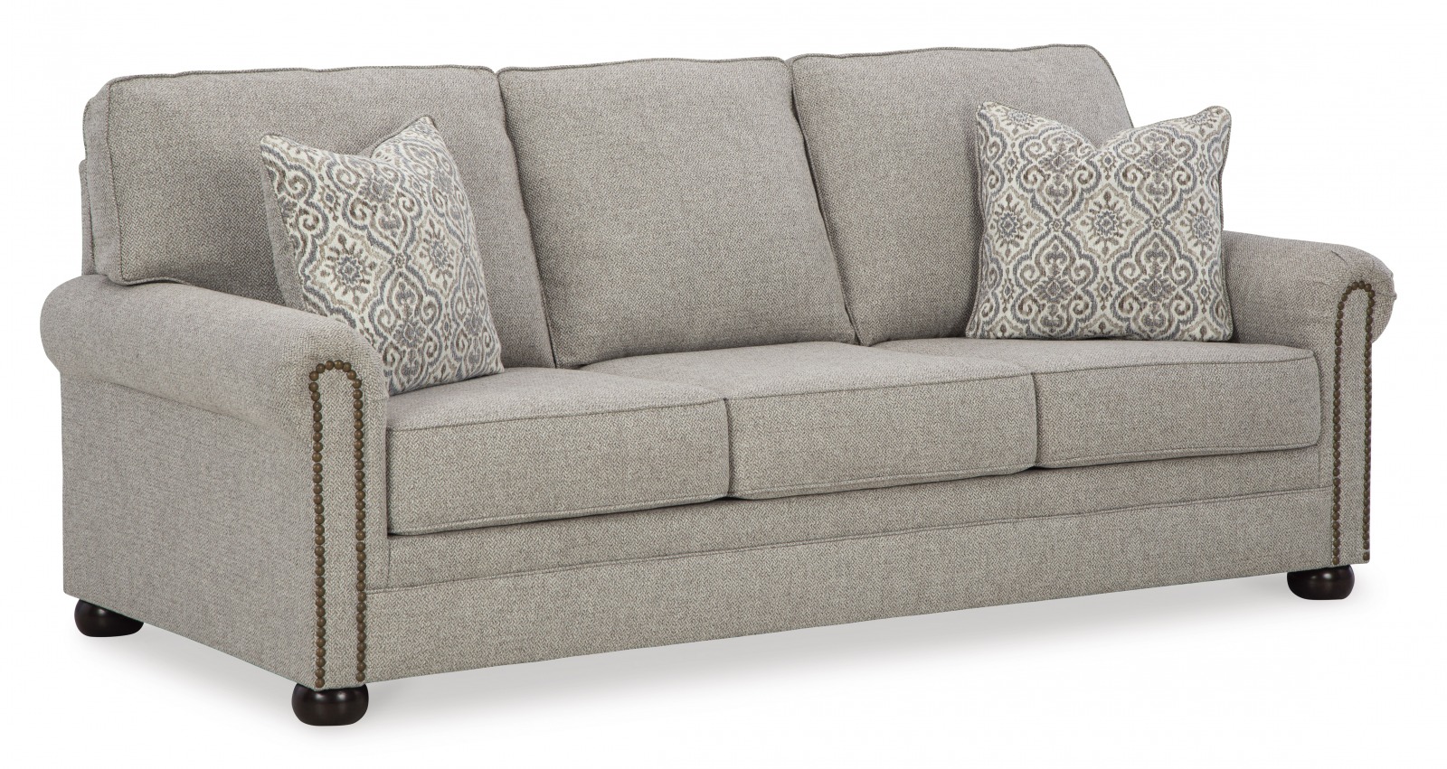 Zainspirowany klasycznym stylem, ale mocno zakorzenionym w teraźniejszości, komplet wypoczynkowy GALEON uzupełnia Twoją część wypoczynkową mieszkania. Wszechstronna tapicerka jest zachwycająco szczegółowa, co daje subtelny efekt jodełki. Designerskie akcenty, takie jak ozdobne wykończenia w kształcie główki gwoździa i drewniane stopki, dodają tradycyjnego charakteru. Dzięki niezawodnemu stylowi i wygodzie tej sofy wystarczy, że usiądziesz wygodnie i zrelaksujesz się.
